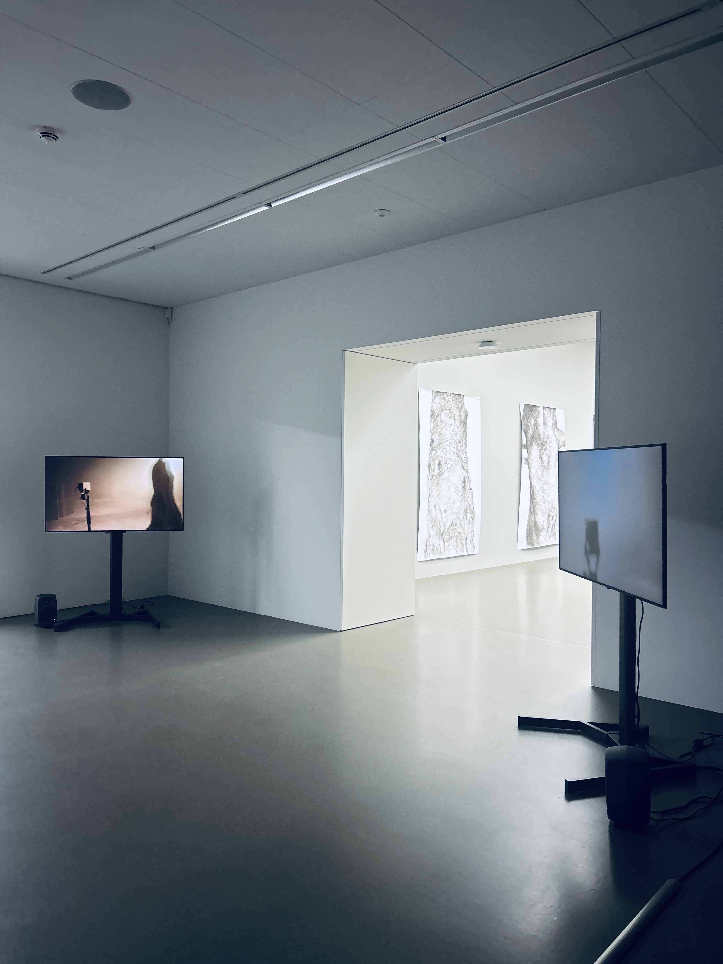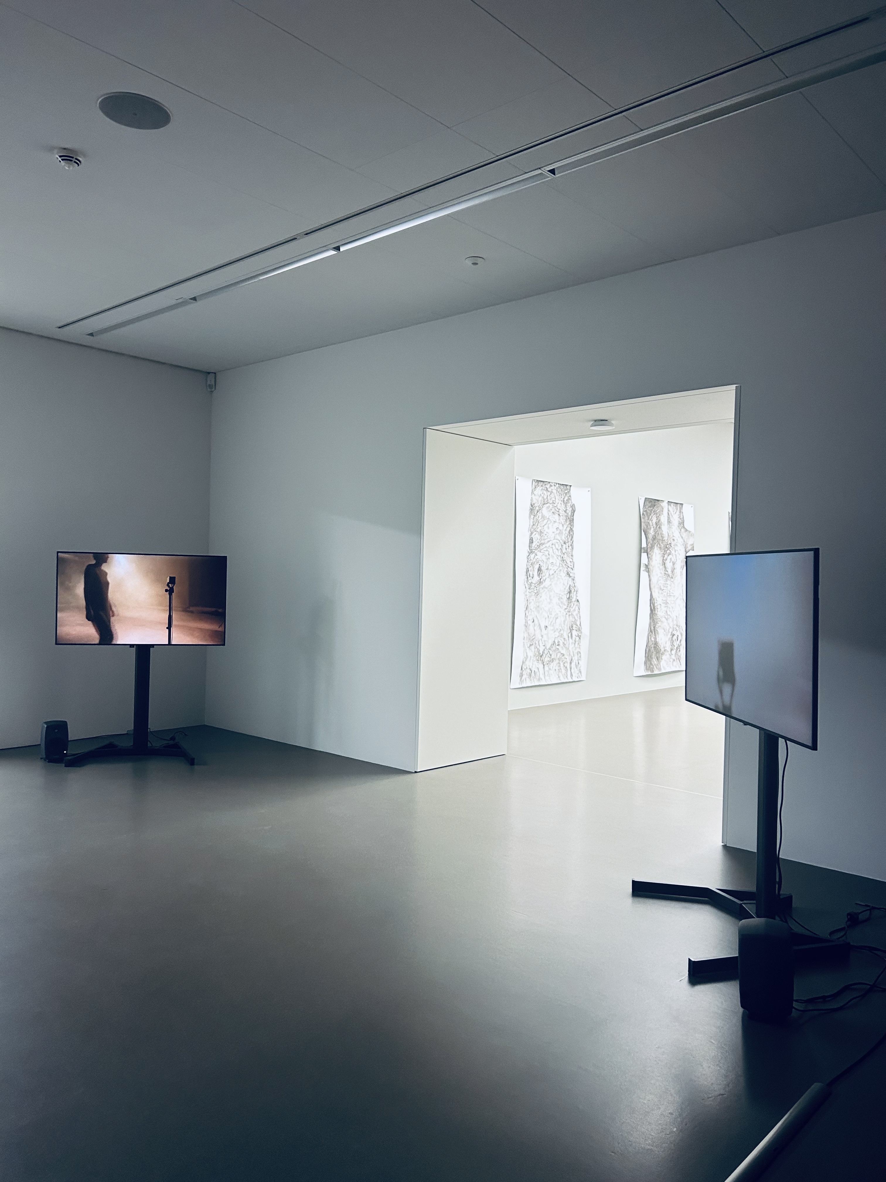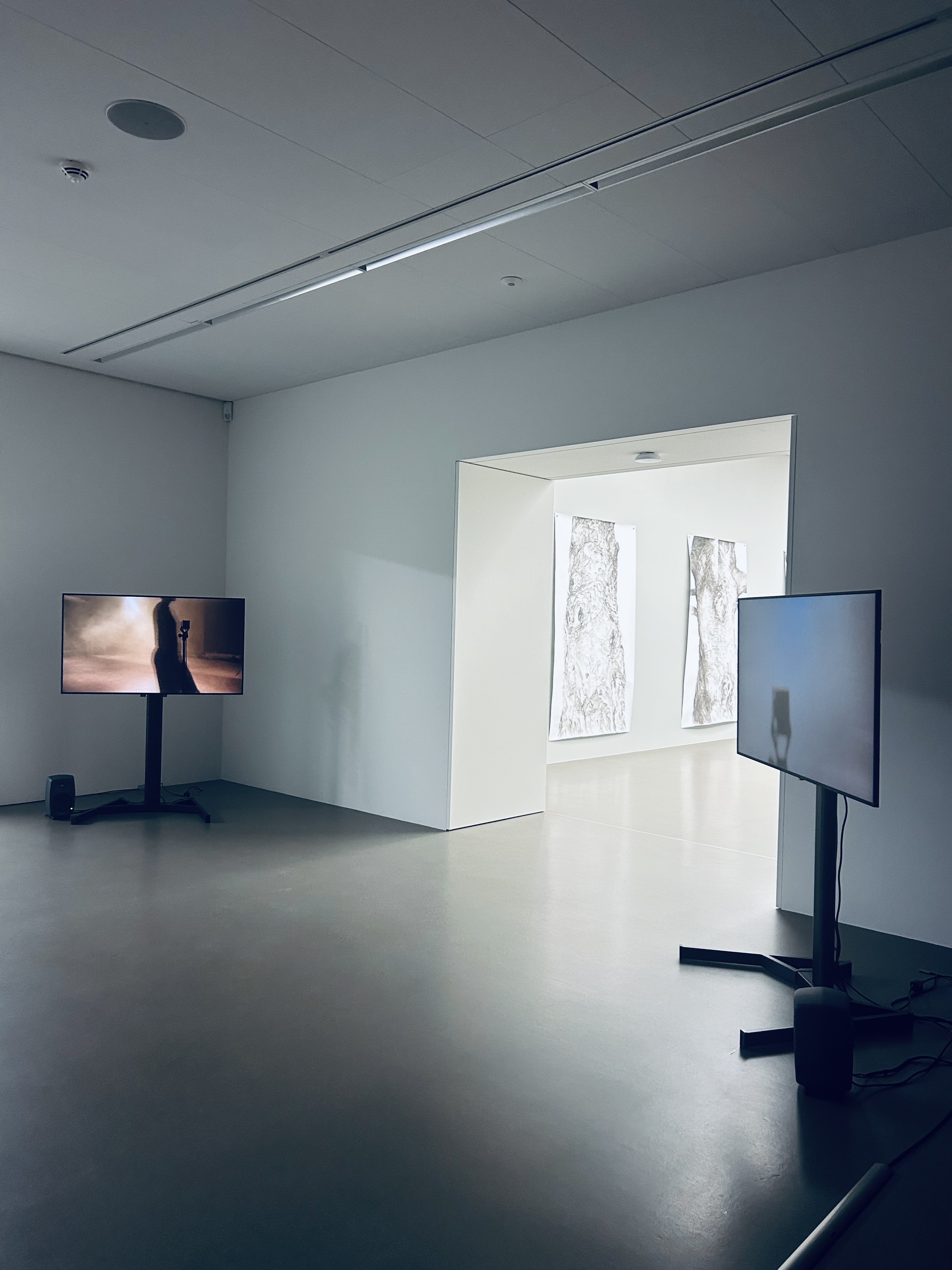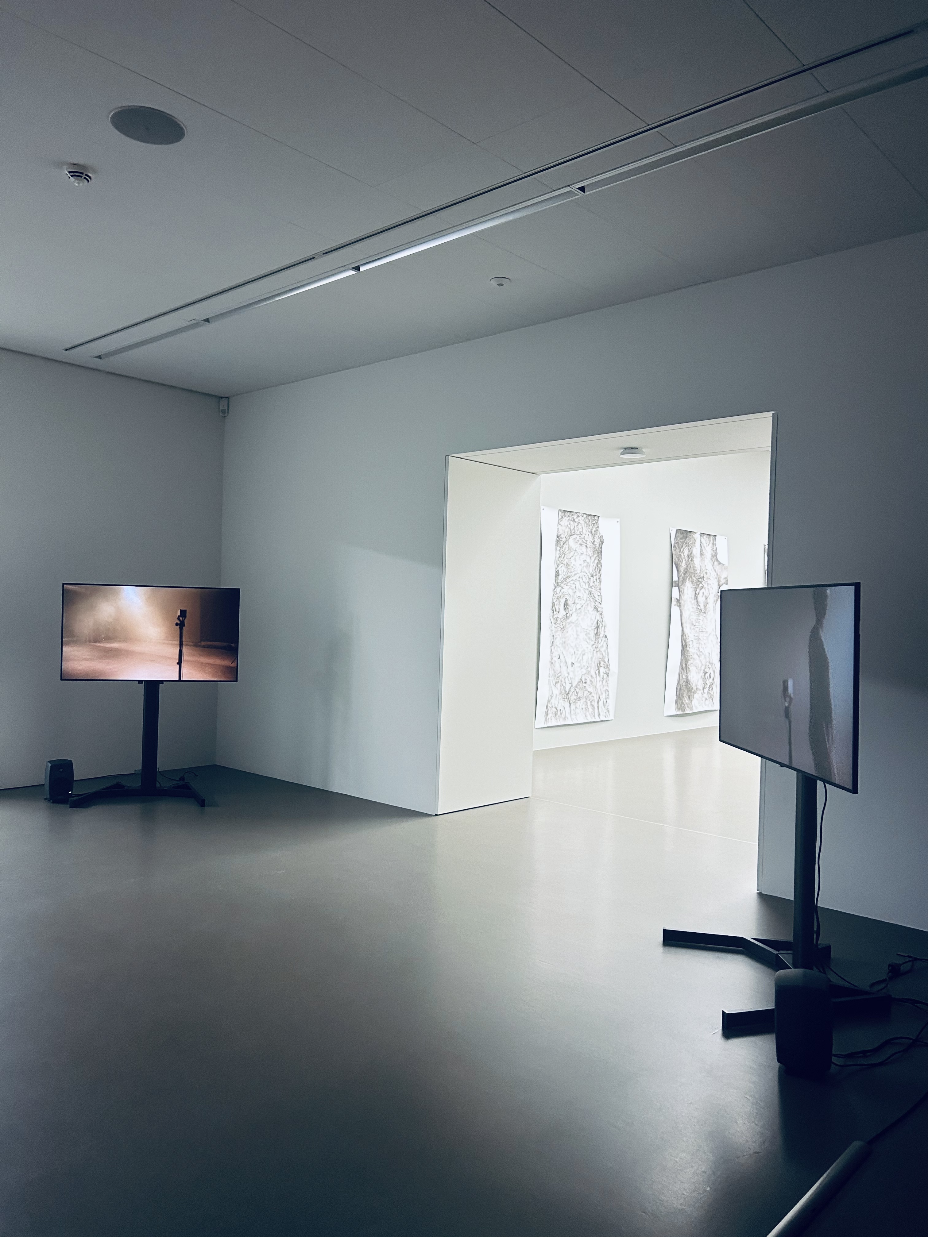 In einem Raum stehen sich vier Bildschirme mit vier Lautsprechern diagonal gegenüber. Auf den Bildschirmen ist eine Frauenfigur zu sehen. Sie läuft durch alle Bildschirme im Uhrzeigersinn, im Kreis. Die Frauenfigur bewegt sich durch die Bildschirme und bewegt so den Sound durch den Raum. Es erklingen Field Recordings, Interviews, Audiodeskriptionen, Musik.